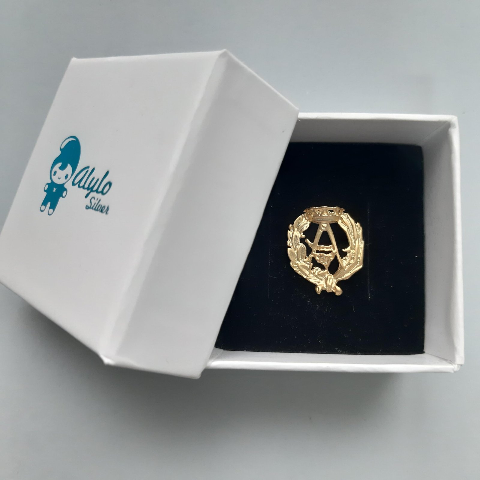 Insignia profesional Arquitectura fabricada en plata de ley 925 chapada en oro. Diseño elegante y duradero, perfecta como regalo o distinción profesional. Incluye estuche de regalo.