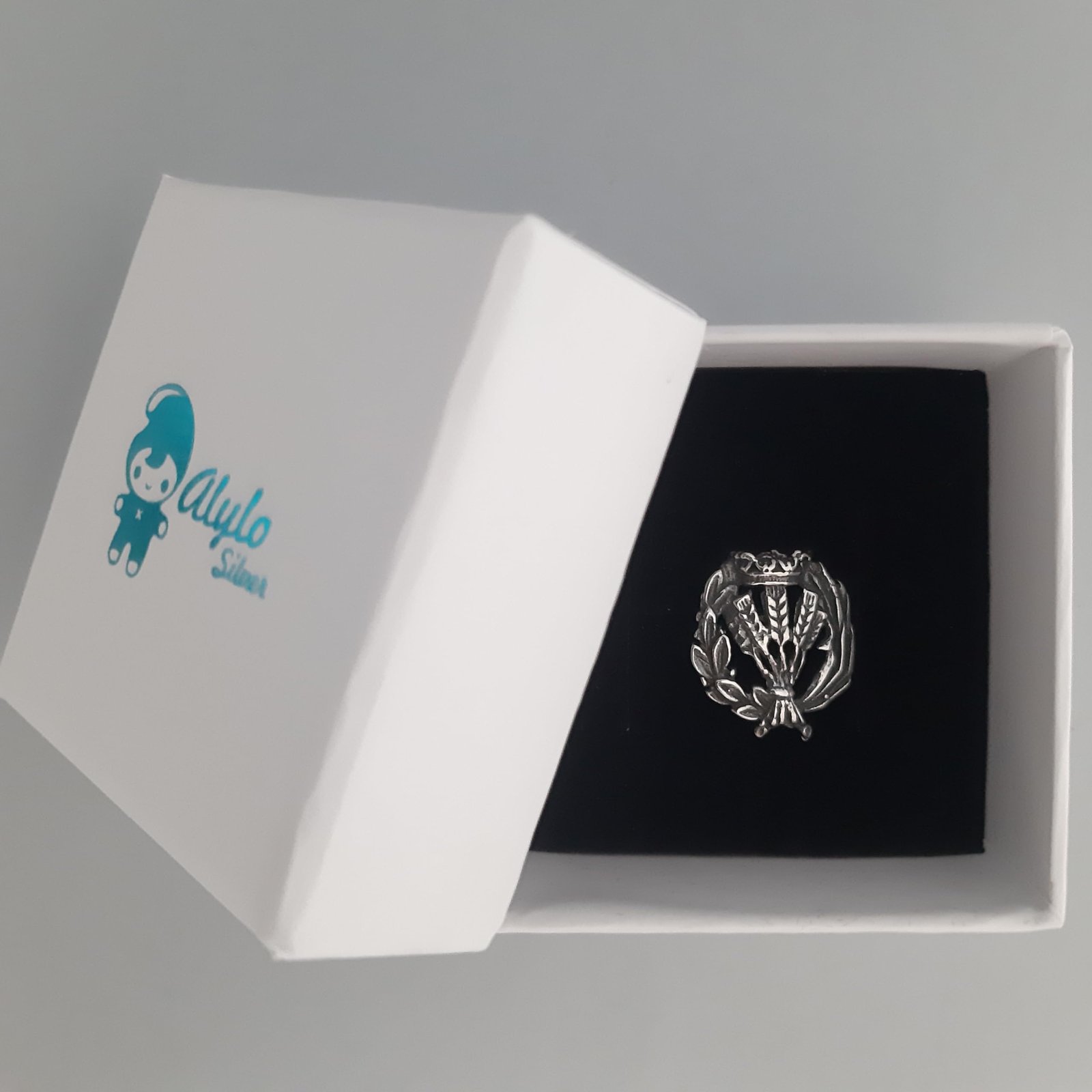 Insignia profesional Ingeniería Agrónoma fabricada en plata de ley 925. Diseño elegante y duradero, perfecta como regalo o distinción profesional. Incluye estuche de regalo.