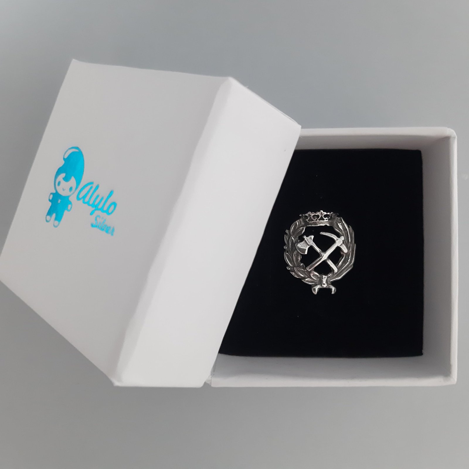 Insignia profesional Ingeniería de Montes fabricada en plata de ley 925. Diseño elegante y duradero, perfecta como regalo o distinción profesional. Incluye estuche de regalo.