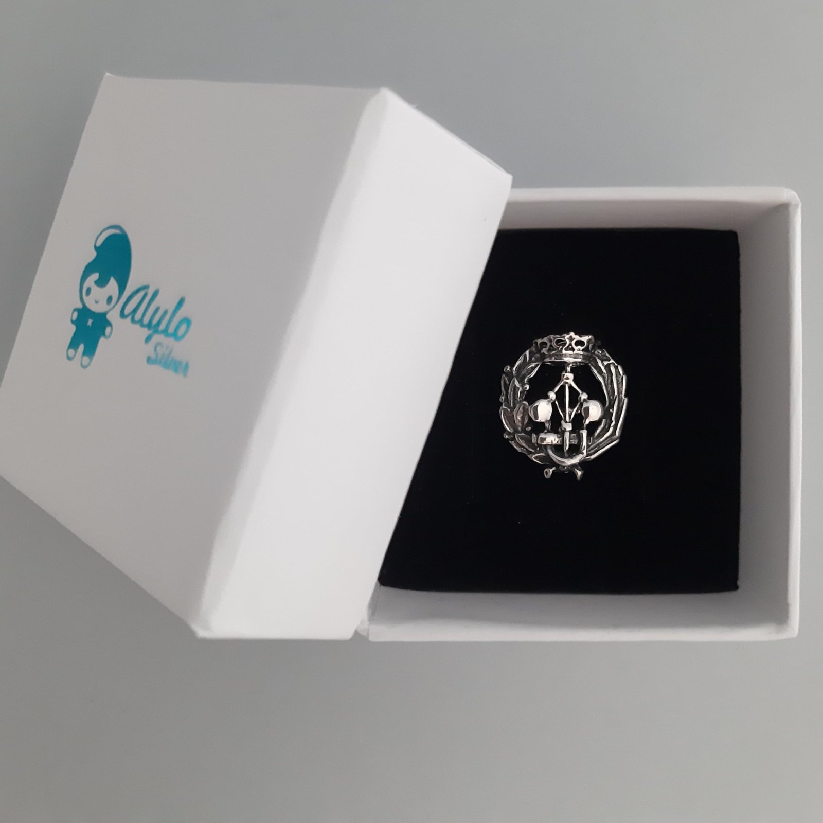 Insignia profesional Ingeniería Industrial fabricada en plata de ley 925. Diseño elegante y duradero, perfecta como regalo o distinción profesional. Incluye estuche de regalo.