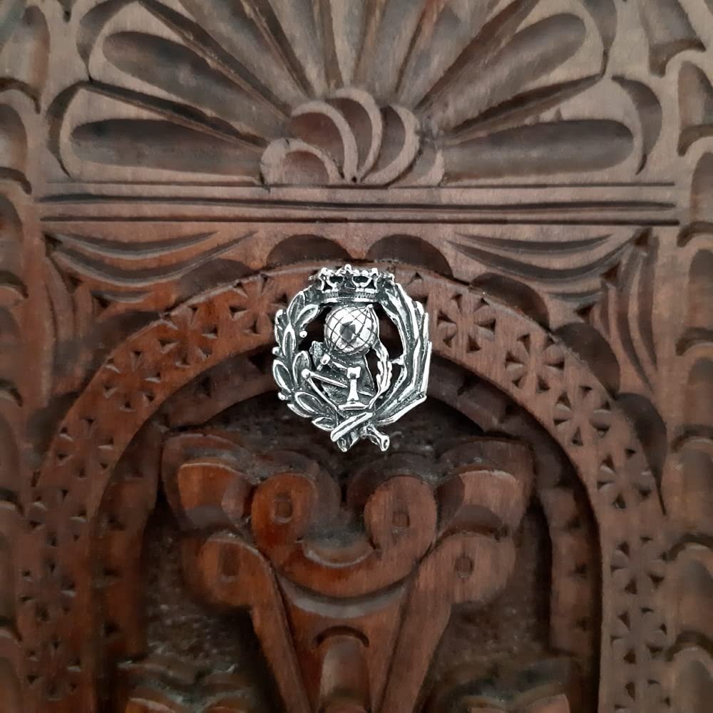 Insignia profesional Magisterio fabricada en plata de ley 925. Diseño elegante y duradero, perfecta como regalo o distinción profesional. Incluye estuche de regalo.
