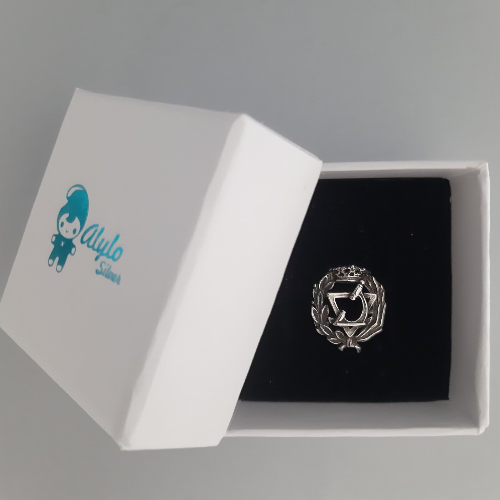 Insignia profesional Óptica fabricada en plata de ley 925. Diseño elegante y duradero, perfecta como regalo o distinción profesional. Incluye estuche de regalo.