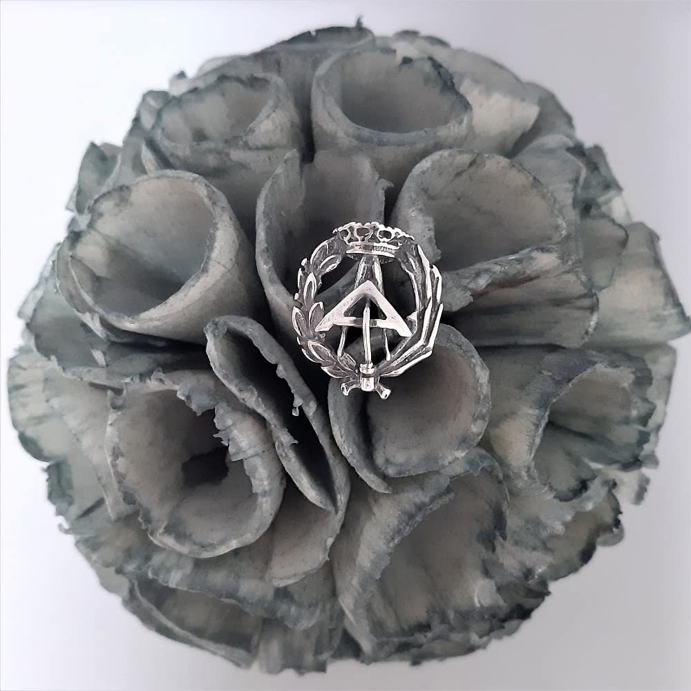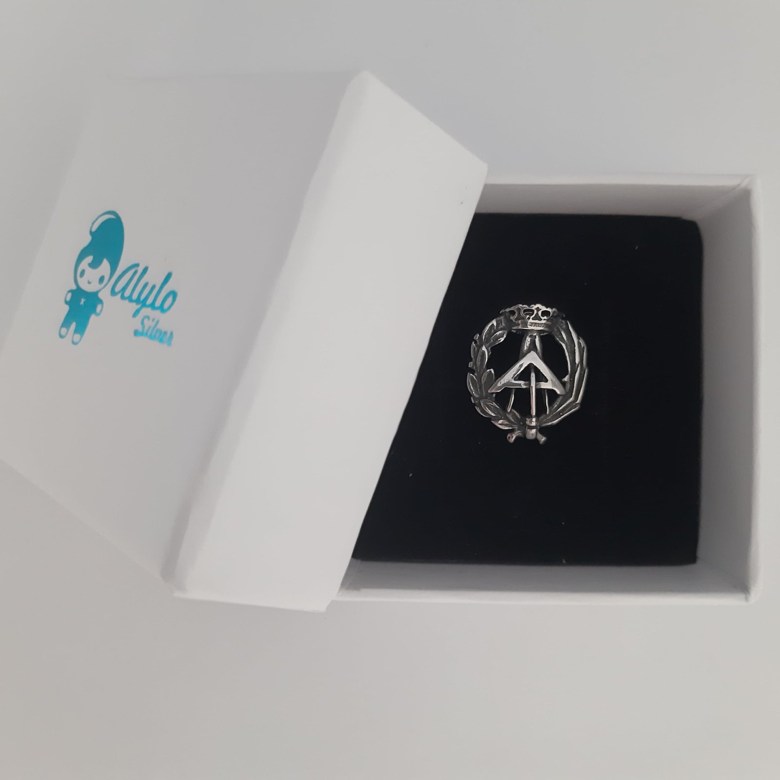 Insignia profesional Técnico de Obras fabricada en plata de ley 925. Diseño elegante y duradero, perfecta como regalo o distinción profesional. Incluye estuche de regalo.
