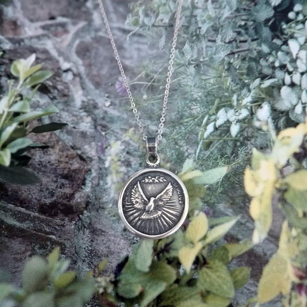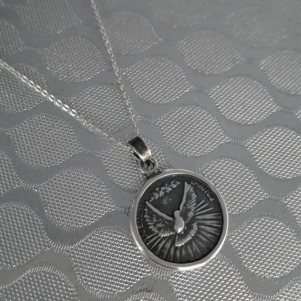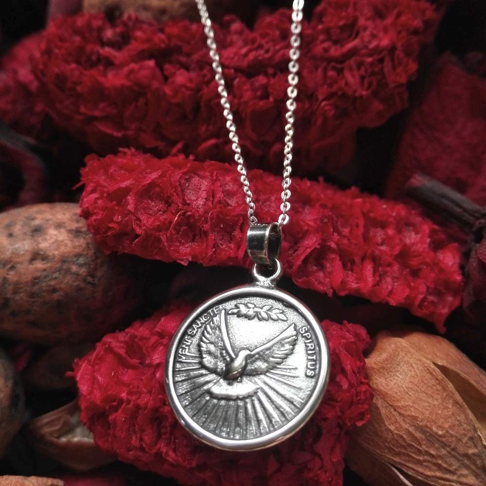 Colgante Medalla Espíritu Santo en plata de ley 925. Incluye estuche de regalo. La cadena es opcional (añadir al pedido por +7€).