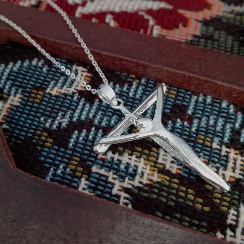 Collar Colgante Cruz de Plata con Cristo para Hombre y para Mujer en Plata Brillante. Incluye una Cadena de plata de 45 cm y un Estuche para Regalo